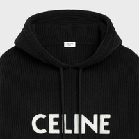 LOOSE HOODED SWEATER WITH CELINE PATCH IN RIBBED WOOL DETAILS 100% WOOL CELINE PATCH LOOSE FIT HOODED COLLAR WITH ADJUSTABLE DRAWSTRING AND CELINE PARIS-ENGRAVED METAL AGLETS DROPPED SHOULDERS RIBBED TRIM 1 KANGAROO POCKET MADE IN ITALY REFERENCE : 2A85W423P.38NO