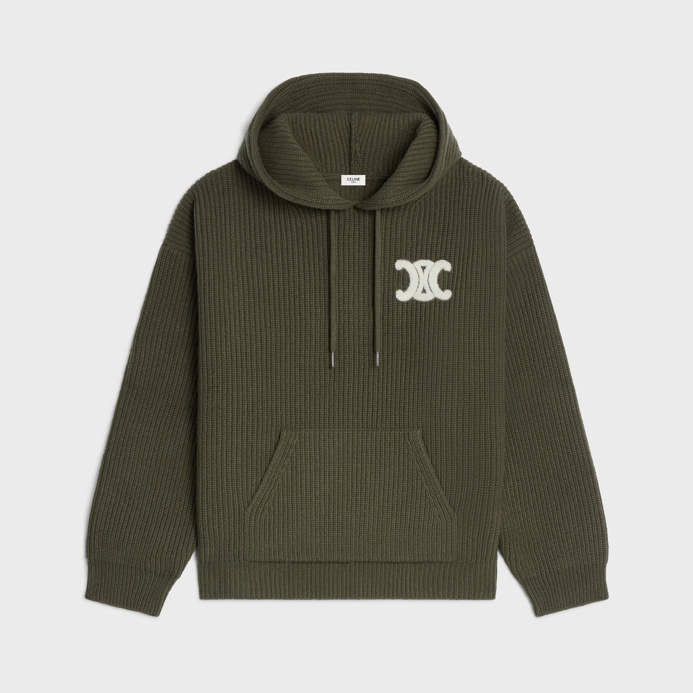 DETAILS 100% WOOL TRIOMPHE EMBROIDERY LOOSE FIT HOOD WITH ADJUSTABLE DRAWSTRING AND CELINE PARIS-ENGRAVED METAL AGLETS 1 KANGAROO POCKET RIBBED TRIM MADE IN ITALY REFERENCE : RY0FV0ZTQ.31FE