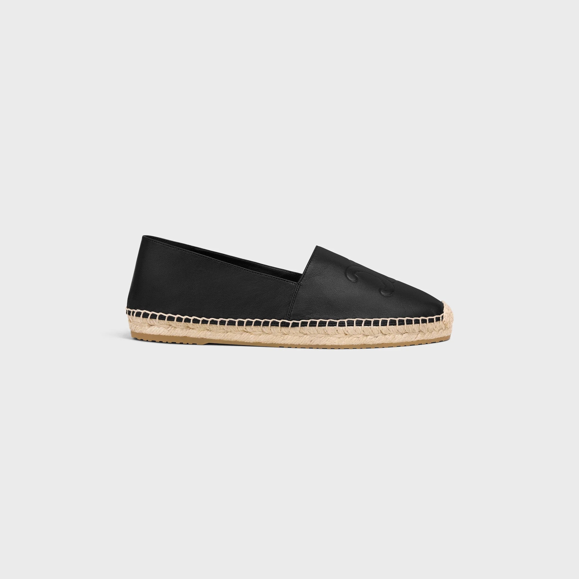 DETAILS 100% LAMBSKIN 0.2 IN (5 MM) HEEL ALMOND TOE SHAPE UPPER HAND-STITCHED TO THE OUTSOLE DEBOSSED TRIOMPHE LOGO ON THE UPPER DEBOSSED CELINE AND TRIOMPHE LOGOS UNDER THE OUTSOLE SLIP-ON AUTHENTIC ROPE INSOLE WITH LEATHER PADDED PATCH TRIOMPHE PATTERNED RUBBER OUTSOLE MADE IN SPAIN REFERENCE : 359635146C.38NO