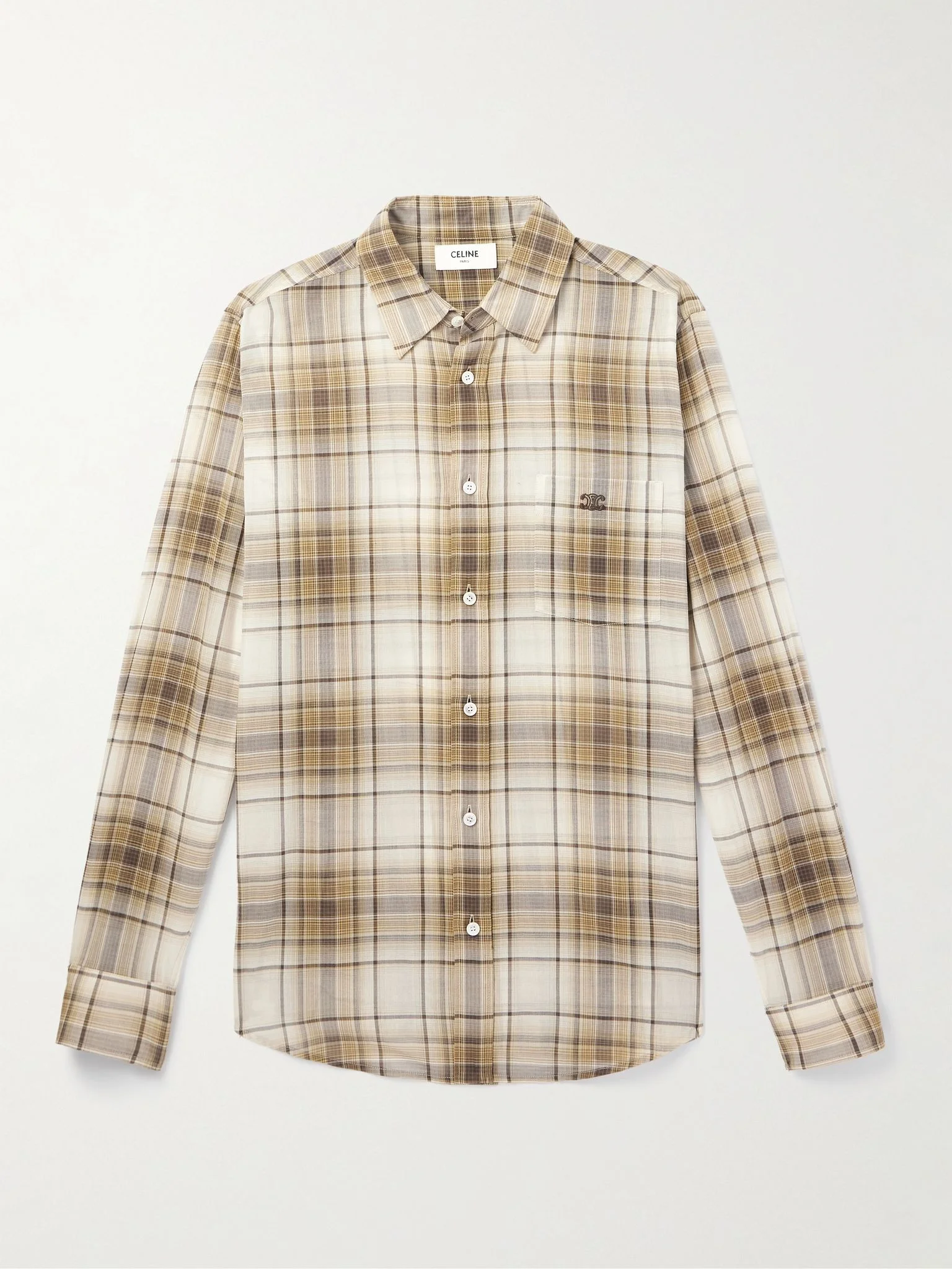 If there's such a thing as an 'everyman' style, it'd have to be the checked shirt – there are few wardrobes without one. CELINE HOMME's version is patterned with a hazy plaid reminiscent of vintage Americana. It's made from lightweight cotton and has slightly dropped shoulders to relax the shape. Size & Fit - Fits true to size. Take your normal size - Designed for a slightly loose fit - Lightweight, semi-sheer, non-stretchy fabric - Model is shown wearing an EU 38 (UK/US 15) - Model measures: chest 36"/ 92cm, height 6'1"/ 185cm Details & Care - Tonal-brown cotton - Button fastenings - 100% cotton
