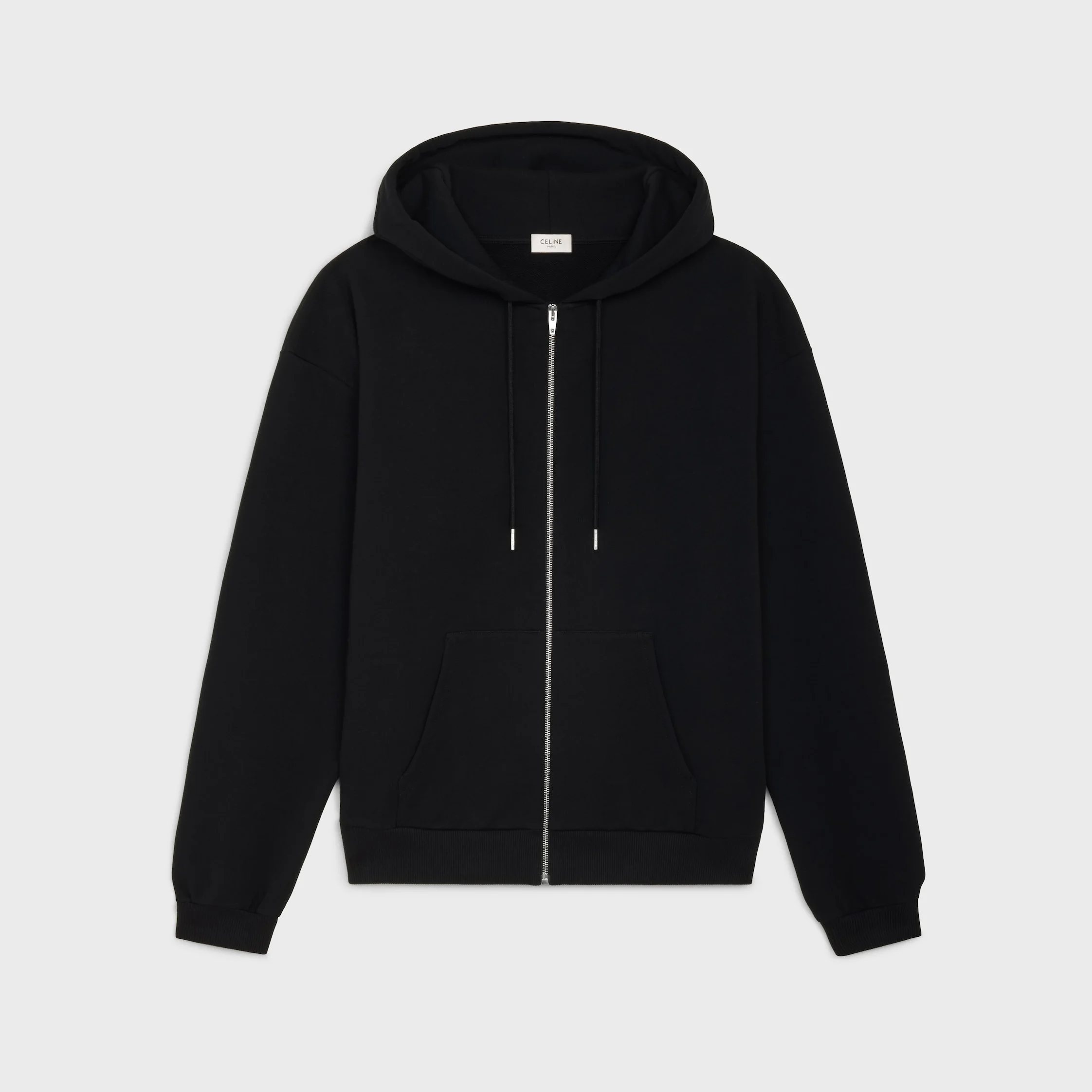 LOOSE ZIPPED HOODIE WITH CELINE SCREEN PRINT IN COTTON FLEECE DETAILS 100% COTTON TRIM 96% COTTON 4% ELASTANE CELINE SCREEN PRINT ON THE HOOD LOOSE FIT HOODED CREW NECK WITH ADJUSTABLE DRAWSTRINGS AND CELINE PARIS-ENGRAVED METAL AGLETS RIBBED TRIM 1 SPLIT KANGAROO POCKET ZIP CLOSURE MADE IN ITALY REFERENCE : 2Y497670Q.38AW