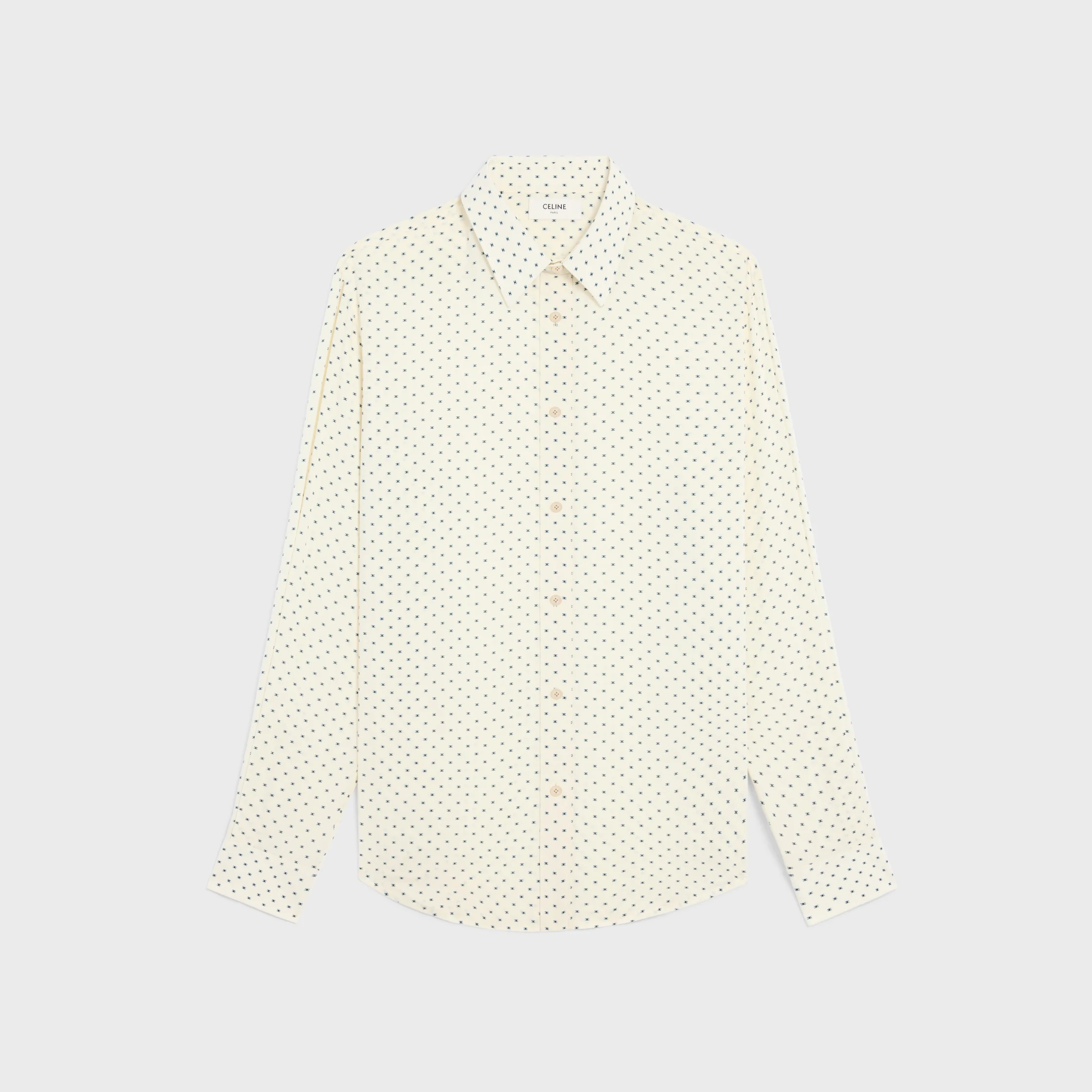 DETAILS 100% VISCOSE LOOSE FIT DRUGSTORE COLLAR WITH COLLAR STAYS BUTTONED CUFFS AND BEVEL-CUT DETAILS 7 MOTHER-OF-PEARL BUTTONS 1 MOTHER-OF-PEARL BUTTON ON THE CUFFS ROUNDED HEM MADE IN PORTUGAL REFERENCE: 2C813314V.98VI