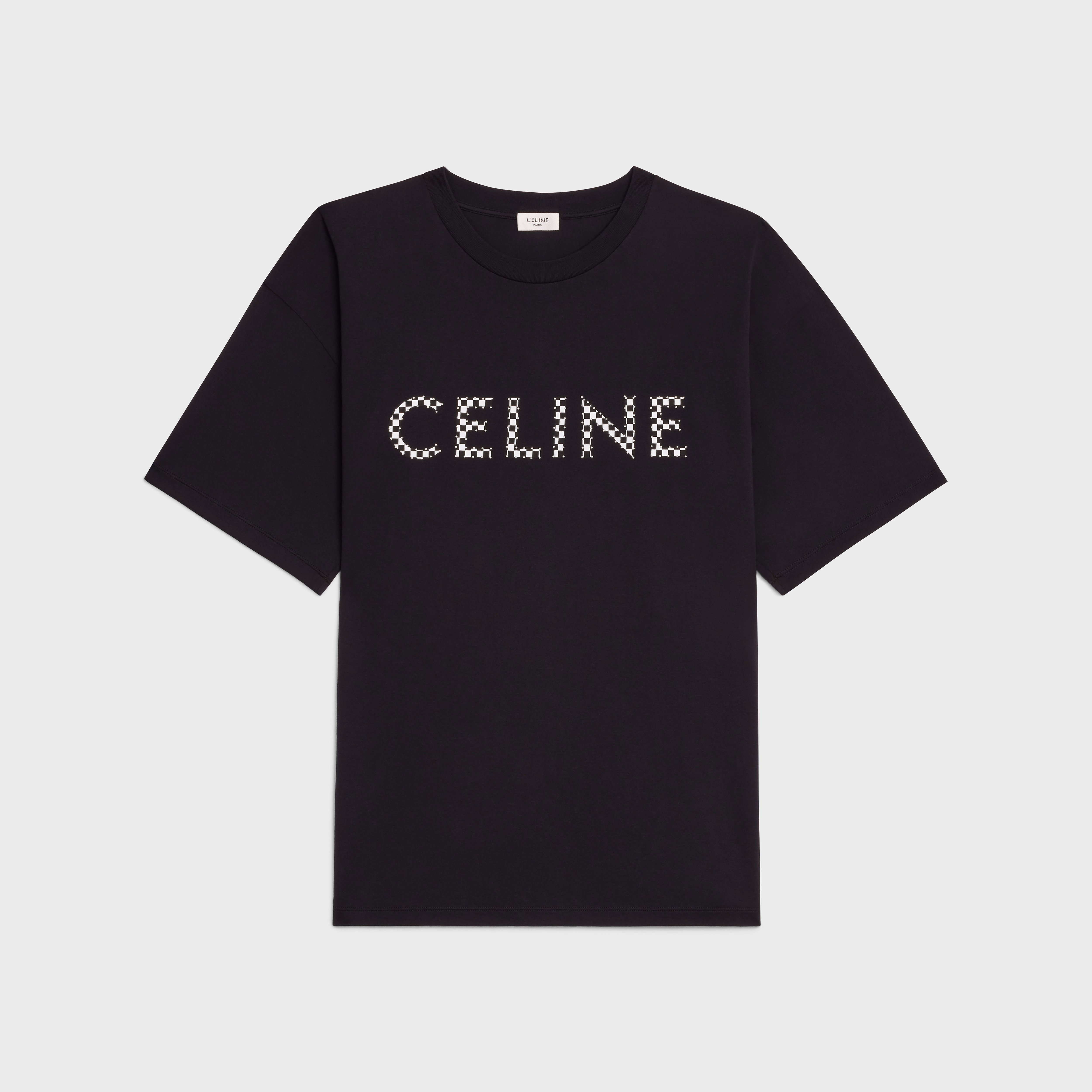 LOOSE CELINE T-SHIRT IN COTTON JERSEY WITH CHECK PRINT AND STUDS DETAILS 100% COTTON CELINE CHECK PRINT WITH STUDS LOOSE FIT CREW NECK RIBBED TRIM ON THE COLLAR MADE IN ITALY REFERENCE : 2X800501F.38NO