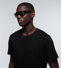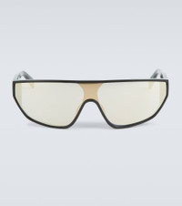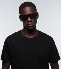 Celine Eyewear designs these mask-shaped sunglasses with grey-tinted lenses. Made in Italy, the modern style is finished with logo-branded temples. Product Details - Frame color: black - Frame material: acetate - Lens color: grey - comes with cleaning cloth - comes in a logo-embossed hard case - Lens filter category 3 - Made in Italy - Item number: P00734805 Size & Fit - Lens width: 143mm-5.65" - Earpiece length: 135mm-5.3" - International fit
