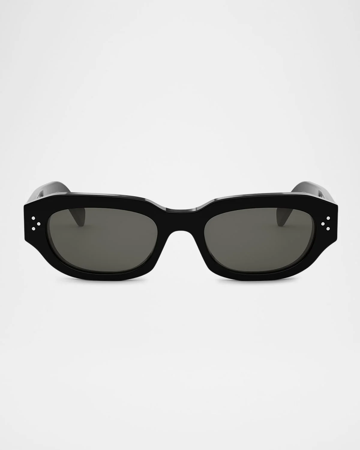 - Celine rectangle sunglasses in acetate - Lens/bridge/temple (in mm): - 33.7-20-145 - Solid-color lenses - Saddle nose bridge - Signature three dots on the sides and temples - Logo underlacquered on the temples - Exposed metal corewire - Acetate - 100% UVA/UVB protection - Made in Italy - Proposition 65 warning for California residents