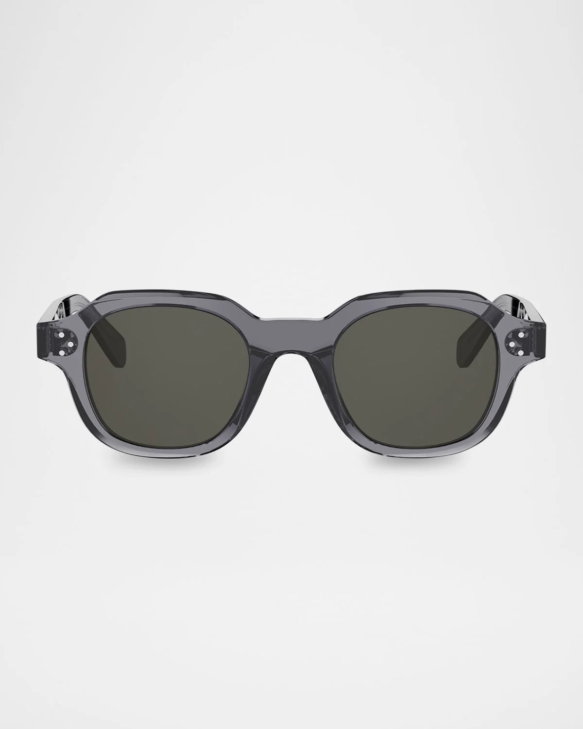 These clear acetate sunglasses by Celine boast a classic square shape with the signature 3 Dots for a modern take on a timeless aesthetic Lens/bridge/temple (in mm): 4822150 Underlacquered logo on the temples Solidcolor lenses Saddle nose bridge Exposed metal corewire Acetate Wipe clean 100% UVA/UVB protection Made in Italy