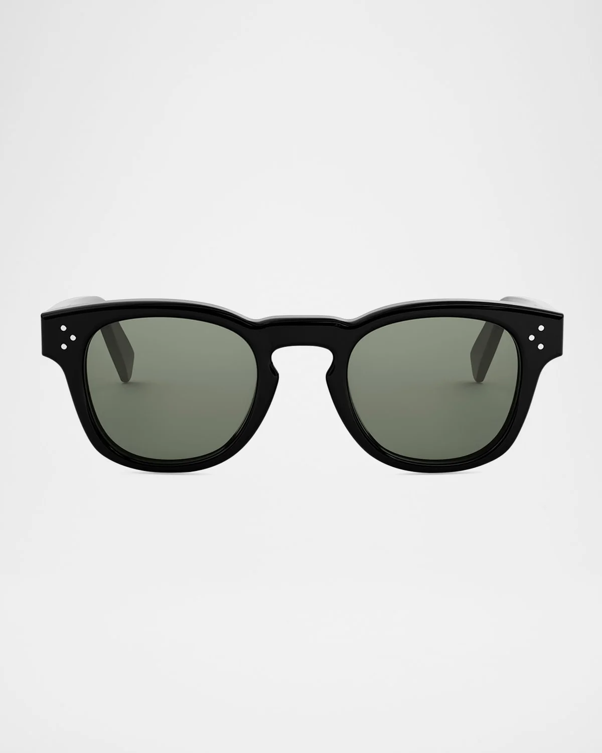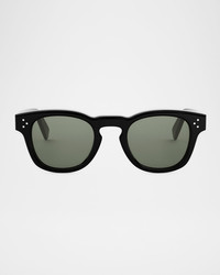 - Celine round sunglasses with lasered logo lettering at the temples - Eye/bridge/temple (in mm): 49-23-145 - Solid-color lenses - Full-rim frames - Keyhole nose bridge - Thin, tapered arms; curved temple tips - Acetate - Hand wash - 100% UVA/UVB protection - Made in Italy - Proposition 65 warning for California residents
