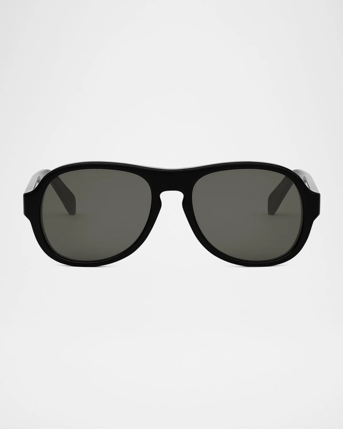 - Celine solid sunglasses with signature 3 Dots and underlacquered logo at temples - Eye/bridge/temple (in mm): 56-18-145 - Eyewear style: Aviator - Keyhole nose bridge - Tapered arms - Acetate/nylon/polyamide - 100% UVA/UVB protection - Made in Italy - Proposition 65 warning for California residents - This product contains perfluoroalkyl and polyfluoroalkyl substances (PFAS). For more information, please visit the manufacturer’s website.