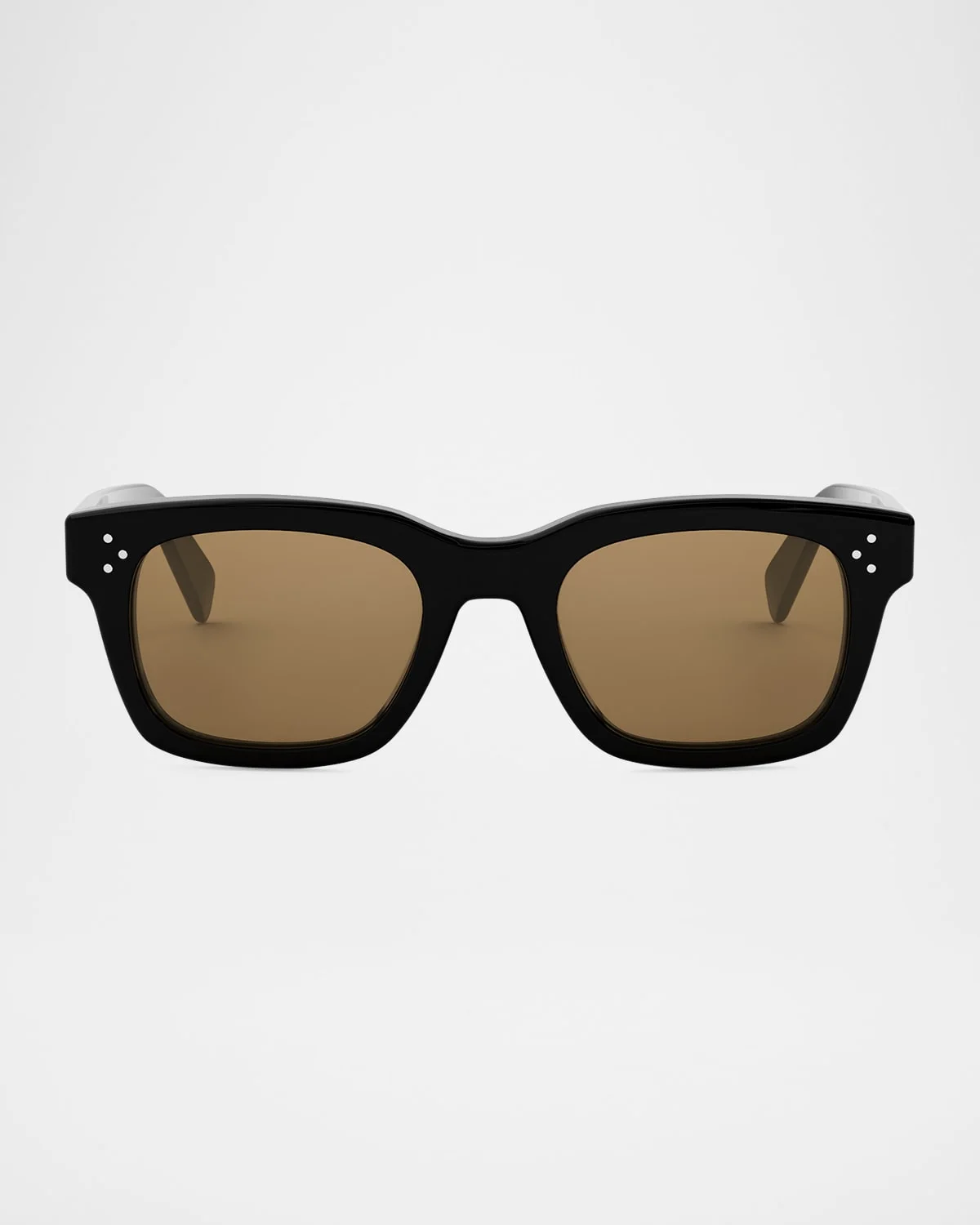 - Celine rectangle sunglasses with acetate frames feature bold three-dot hardware - Lens/bridge/temple (in mm): 53-20-145 - Solid-color lenses - Saddle nose bridge - Logo signature on the temples - Exposed metal corewire - Tapered arms; curved temple tips - Metal/nylon/polyamide - 100% UVA/UVB protection - Made in Italy - Proposition 65 warning for California residents