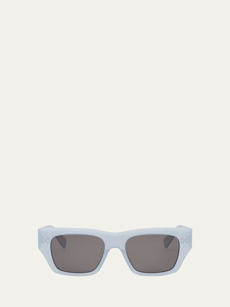 Celine square sunglasses in acetate featuring the signature Bold 3 Dots on the front and temples Lens/bridge/temple (in mm): 53-18-150 Solid-color lenses Saddle nose bridge Thick, tapered arms with logo lettering Exposed metal corewire Curved temple tips Acetate 100% UVA/UVB protection Made in Italy Proposition 65 warning for California residents Online Inquiries: BGS21_NCKNB| Store Inquiries: #4899939
