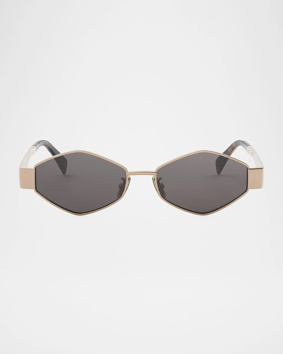 - Celine "Cl40254um" geometric sunglasses in metal and nylon - Lens/bridge/temple (in mm): - 54-16-135 - Solid-color lenses - Adjustable nose pads - Triomphe metal signature on the temples - Tapered arms - Curved, capped temple tips - Metal/nylon - 100% UVA/UVB protection - Made in Italy - Proposition 65 warning for California residents - This product contains perfluoroalkyl and polyfluoroalkyl substances (PFAS). For more information, please visit the manufacturer’s website.