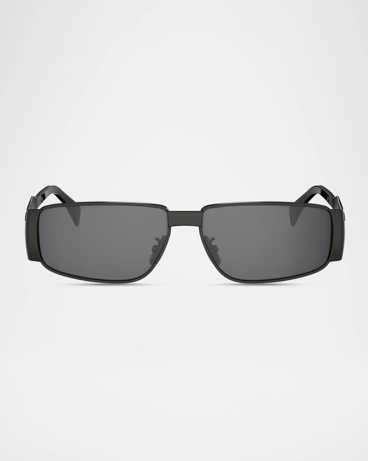 These sleek metal sunglasses by Celine boast a modern rectangular shape with the Triomphe metal signature in relief on both temples for understated branding Lens/bridge/temple (in mm): 5914140 Solidcolor lenses Adjustable nose pads Thick, tapered arms Metal Wipe clean 100% UVA/UVB protection Made in Italy