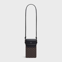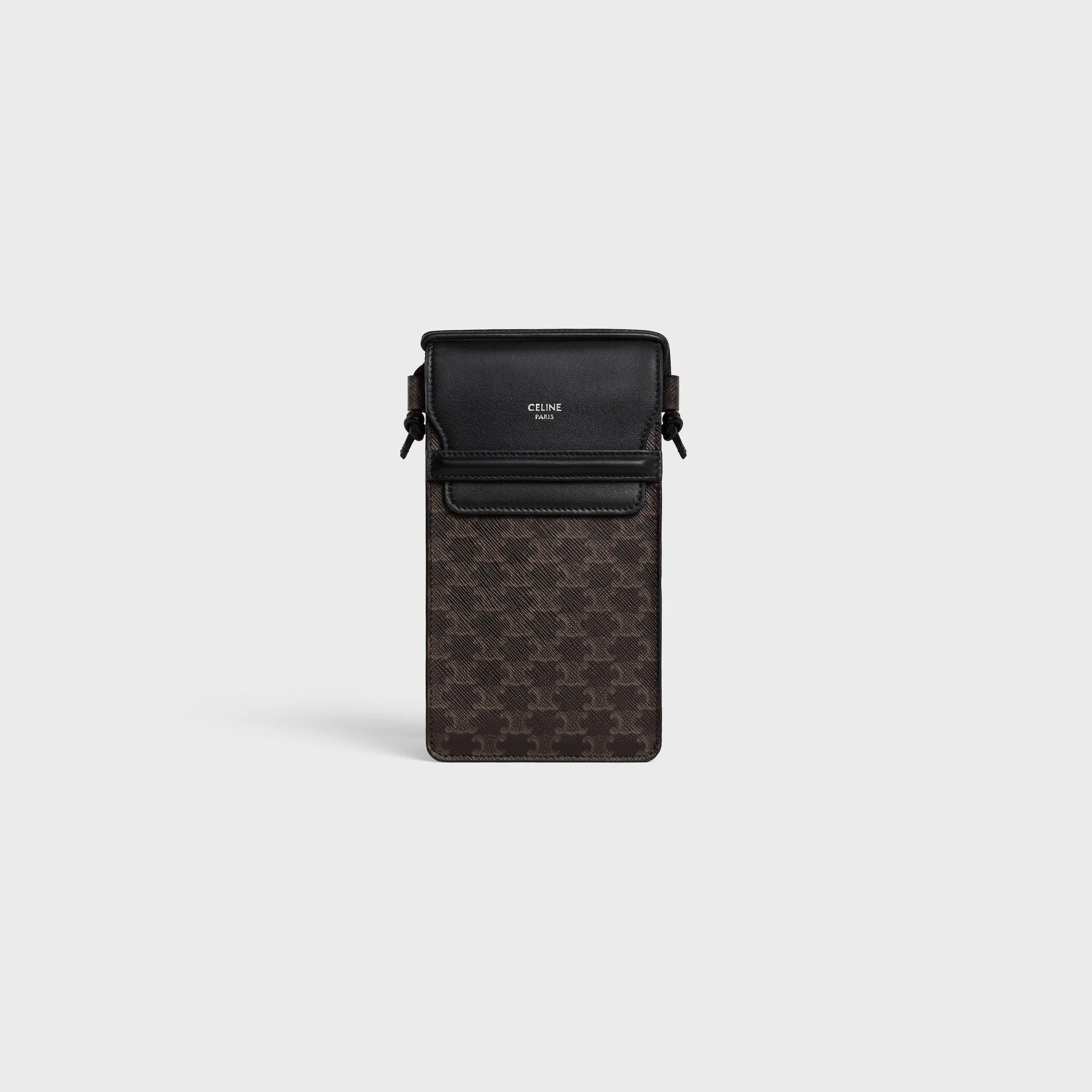 PHONE POUCH WITH FLAP in Triomphe Canvas and Lambskin