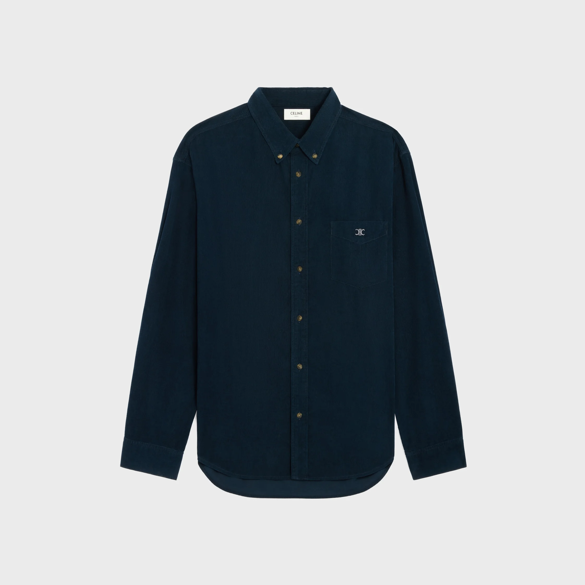 DETAILS 100% COTTON TRIOMPHE EMBROIDERY LOOSE FIT DRUGSTORE COLLAR 1 PATCH POCKET ON THE CHEST BUTTONED CUFFS AND BEVEL-CUT DETAILS ROUNDED HEM 7 HORN BUTTONS 1 HORN BUTTONS ON THE COLLAR 2 HORN BUTTONS ON THE CUFFS MADE IN ITALY REFERENCE : RC07O216T.GCO1