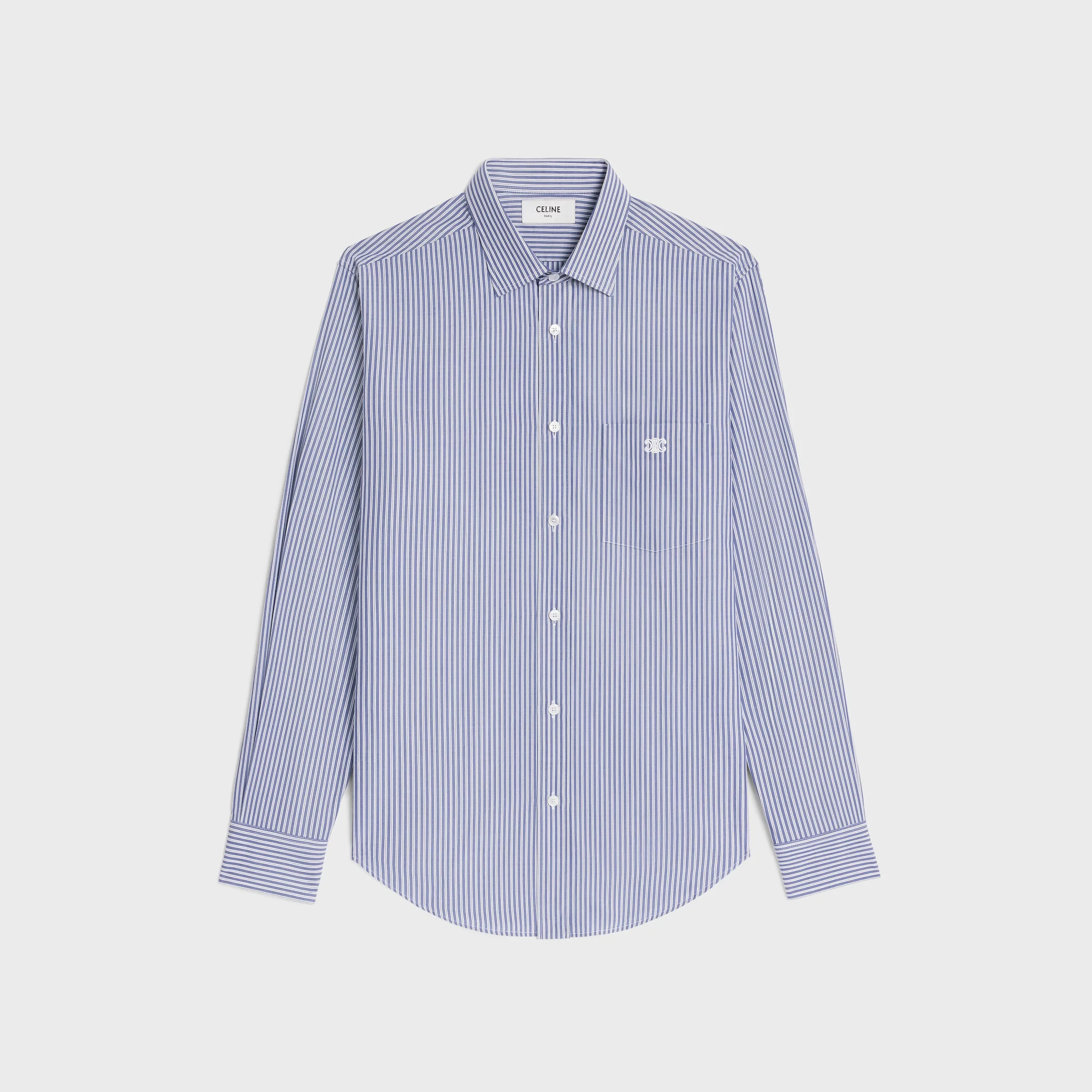 LOOSE DRUGSTORE COLLAR SHIRT WITH TRIOMPHE EMBROIDERY IN STRIPED COTTON DETAILS 100% COTTON TRIOMPHE EMBROIDERY LOOSE FIT DRUGSTORE COLLAR WITH COLLAR STAYS BUTTONED CUFFS AND BEVEL-CUT DETAILS 1 PATCH POCKET ON THE CHEST 7 MOTHER-OF-PEARL BUTTONS 1 MOTHER-OF-PEARL BUTTON ON THE CUFFS ROUNDED HEM MADE IN ITALY REFERENCE : 2C982467X.05BI