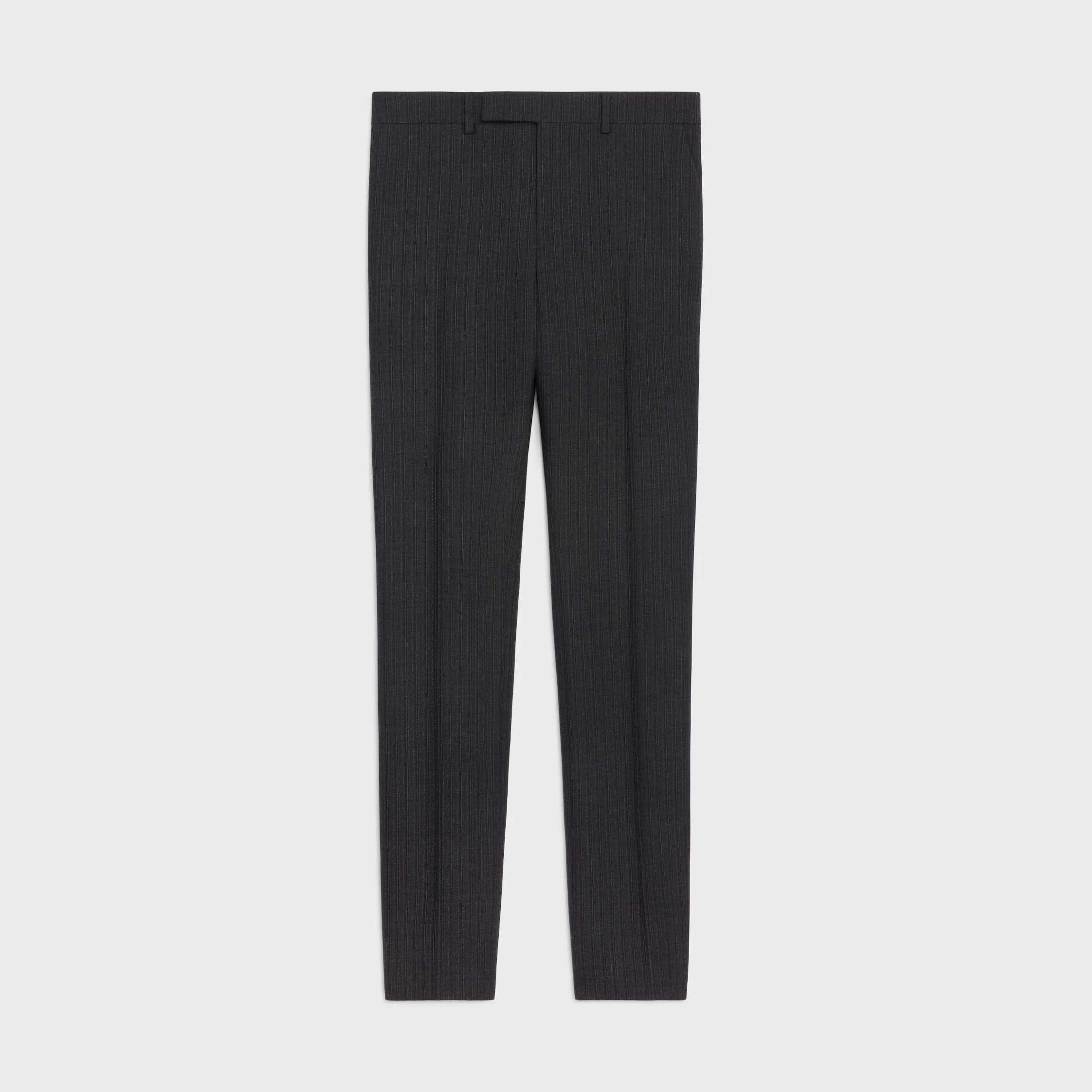 MODS PANTS IN RETRO STRIPED WOOL GABARDINE DETAILS 99% WOOL 1% SILK CLASSIC FIT MID-RISE STRAIGHT LEG 2 SIDE POCKETS 2 WELT POCKETS WITH HORN BUTTON ON THE BACK ZIP AND HOOK-AND-EYE CLOSURE MADE IN ITALY REFERENCE : 2P96A154W.09AJ