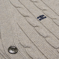 CLASSIC CABLE-KNIT CARDIGAN WITH TRIOMPHE EMBROIDERY IN CASHMERE DETAILS 100% CASHMERE LEATHER MATERIAL 100% GOATSKIN TRIOMPHE EMBROIDERY CLASSIC FIT V-NECK LONG RAGLAN SLEEVES RIBBED TRIM 2 WELT POCKETS 2 SUEDE ELBOW PATCHES 5 CELINE PARIS-ENGRAVED MOTHER-OF-PEARL BUTTONS MADE IN ITALY REFERENCE : 2AD5G362W.08GC