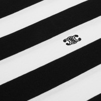 LOOSE T-SHIRT WITH TRIOMPHE EMBROIDERY IN STRIPED JERSEYTHE LOOSE CELINE T-SHIRT IS A LARGE FIT WITH DROPPED SHOULDERS, AND THE LENGTH STOPS BELOW THE HIPS.IT'S POSSIBLE TO CHOOSE ONE SIZE DOWN FROM YOUR USUAL SIZE. DETAILS LOOSE FIT CREW NECK RIBBED TRIM ON THE COLLAR REFERENCE:RX02Q326E.38AW
