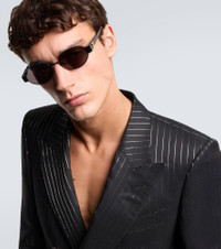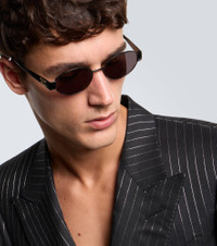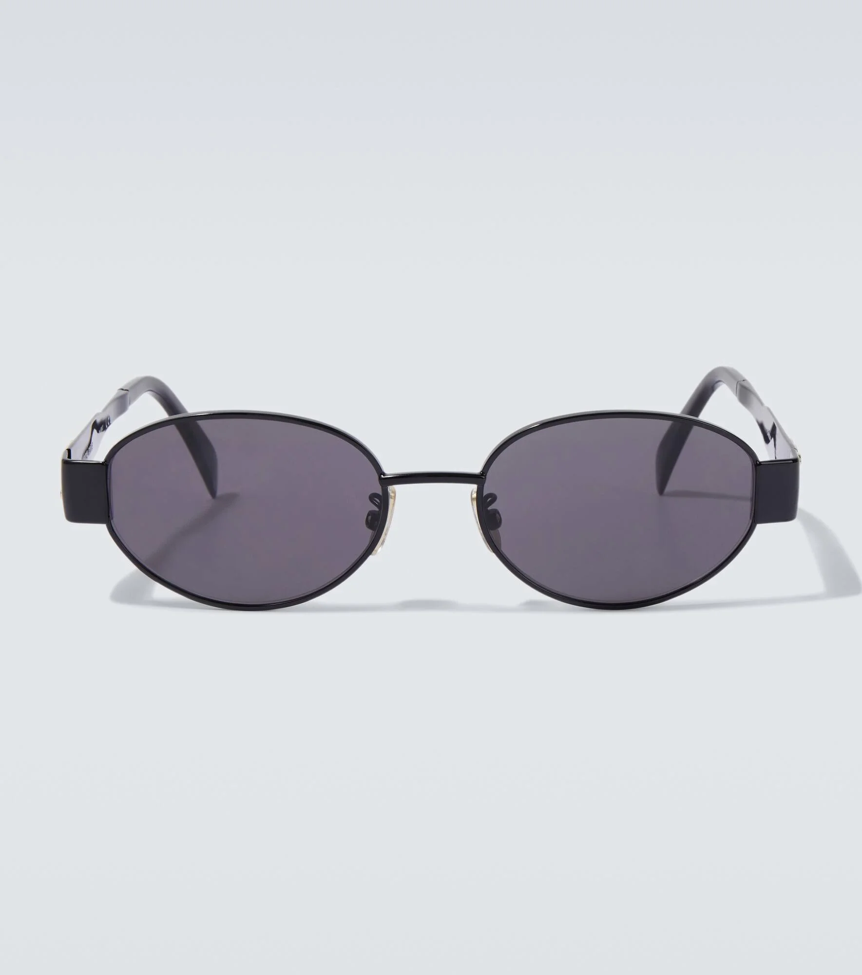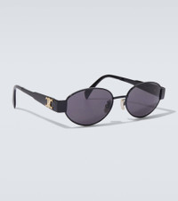 Italian-made from black metal and accented with iconic Triomphe hardware, the Triomphe Metal 01 sunglasses from Celine Eyewear boast a contemporary silhouette. The stylish pair features gray lenses and sleek, oval-shaped frames. Product Details - Frame material: metal - Frame color: black - Lens filter category 3 - Lens color: grey - Made in Italy - Includes: case, cleaning cloth - The color of the case may vary - Item number: P01103177 Size & Fit - Lens width: 54mm-2.15" - Bridge size: 18mm-0.7" - Earpiece length: 135mm-5.3"