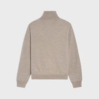 DETAILS 100% WOOL TRIOMPHE EMBROIDERY CLASSIC FIT HIGH COLLAR LONG SLEEVES RIBBED TRIM ZIP CLOSURE MADE IN ITALY