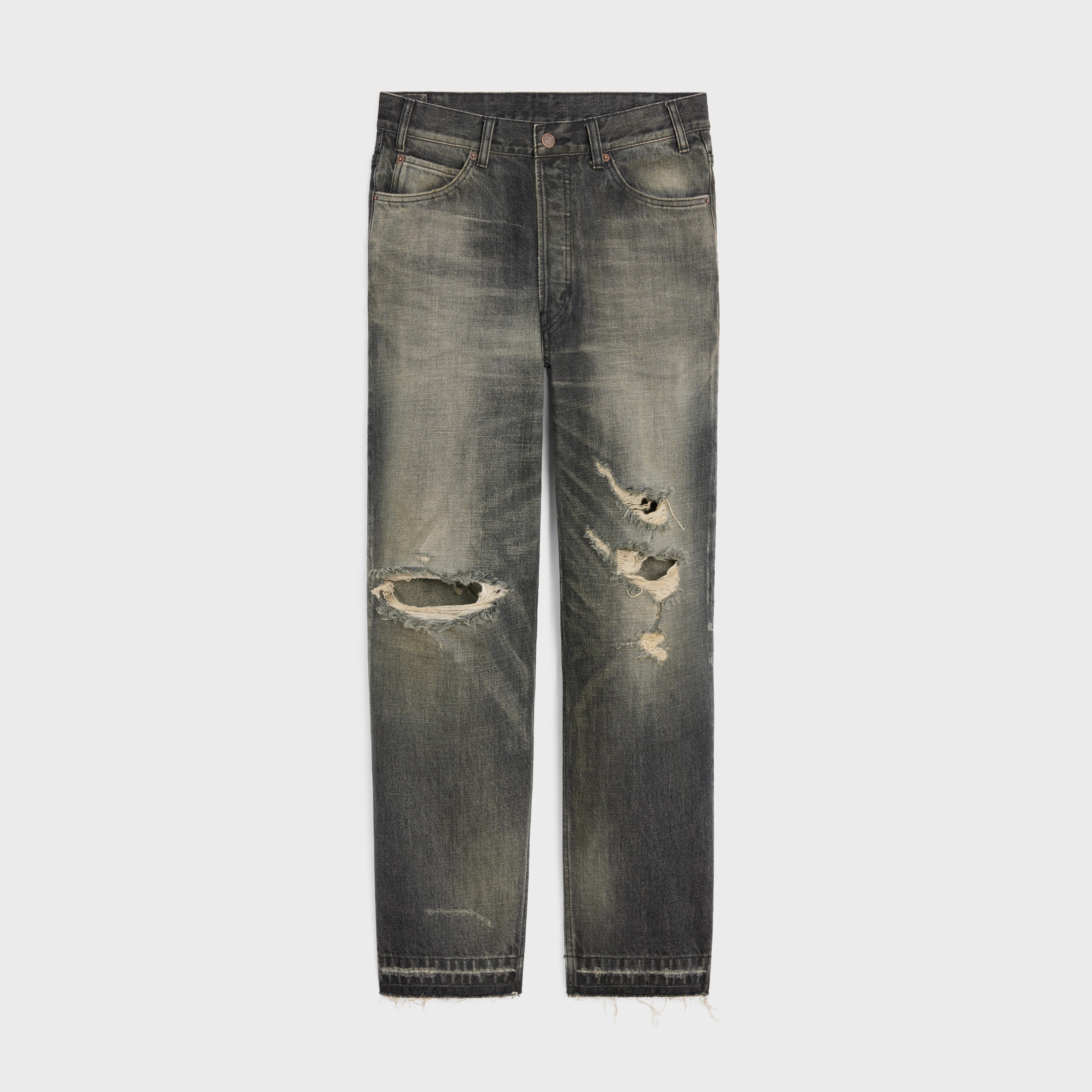 LOW-RISE WESLEY JEANS IN DESTROYED BLACK PARADISO WASH DENIM DETAILS 100% COTTON DESTROYED BLACK PARADISO WASH LOOSE FIT LOW-RISE 5 POCKETS HOLES ON THE LEGS RIVETS ON THE FRONT POCKETS PATCH AT THE BACK OF THE WAISTBAND CELINE JEANS-ENGRAVED ZIP AND BUTTONS MADE IN JAPAN REFERENCE : 2N785247Y.06CK