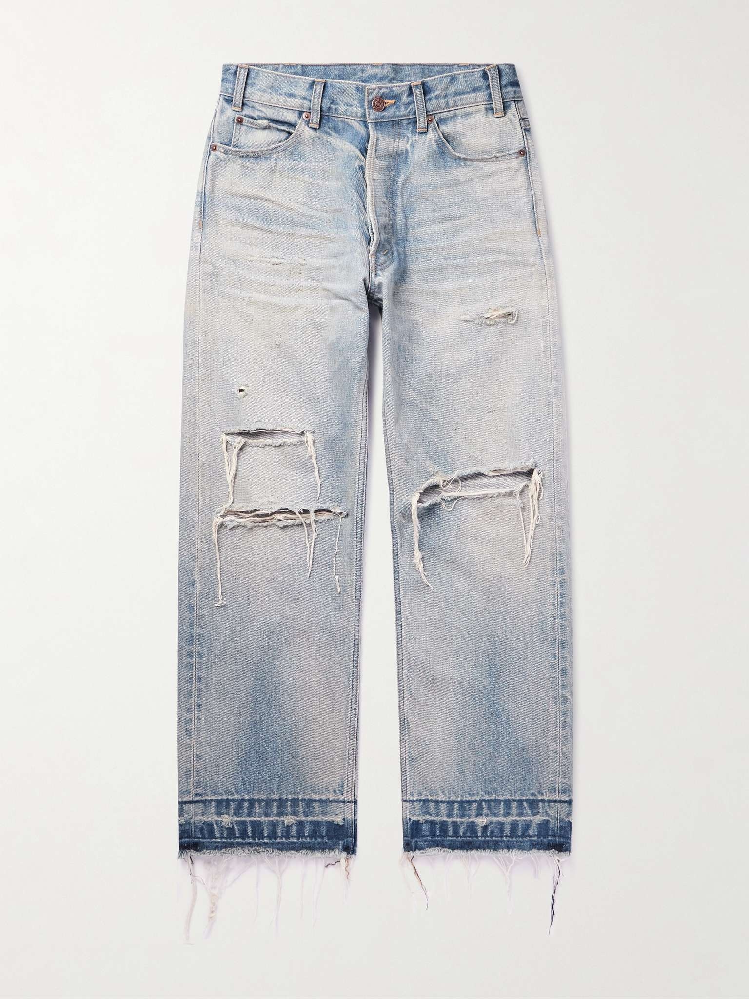 Denim jeans are an especially good investment, they shape themselves to the body for a personalised fit and are hardwearing. CELINE HOMME’s ‘Wesley’ pair has a a rigid feel and is ripped and frayed at the hems and knees. Their loose, straight-leg fit will look great with Cuban boots. Size & Fit - Fits true to size, however those who are between sizes should take the smaller size - Relaxed-straight leg, mid-rise style - Mid-weight, non-stretchy fabric - Model is shown wearing a 29 - Model measures: waist size 29, height 6'1"/ 185cm Details & Care - Light-blue denim - Button fastenings - 100% cotton