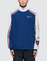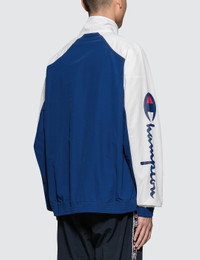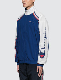 - Champion Reverse Weave - Sleeve Logo Jacket - High neck - Long raglan sleeve - Zip up - Embroidered branding on chest - Striped detail and printed branding on sleeve - Side pocket - Elasticated cuff and hem SIZING - Fits true to size, take your normal size - Designed to be worn fitted - Model wears size L - Model measures: Height 183cm, Chest 35.5”/90cm, Waist 30”/76cm, Hip 33”/84cm