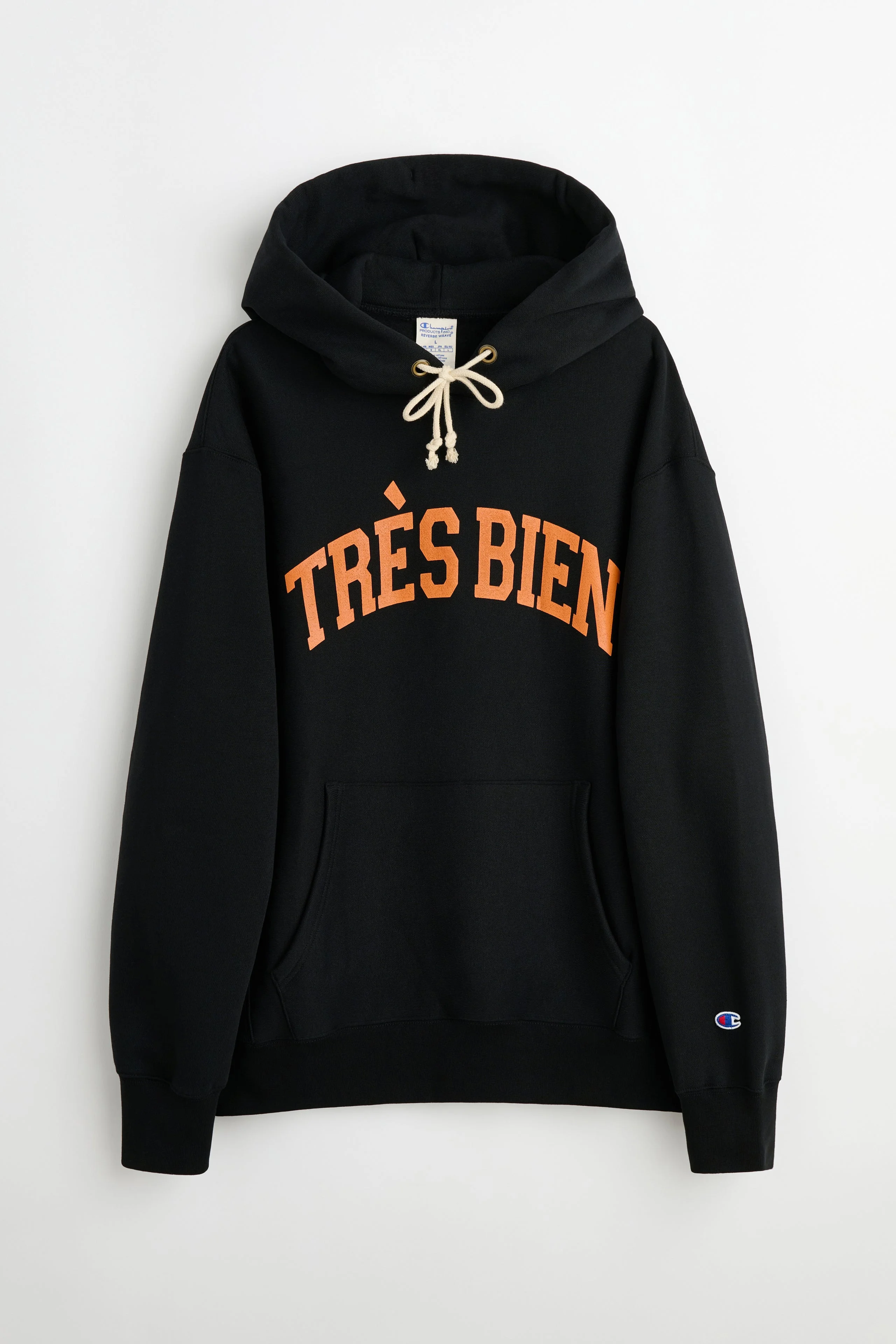 TRÈS BIEN X CHAMPION REVERSE WEAVE ARCH LOGO HOODIE BLACK