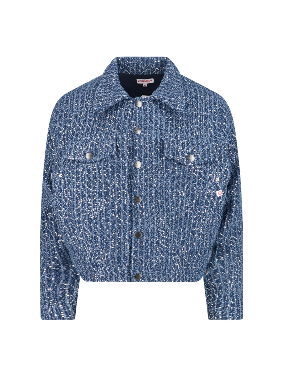 CHARLES JEFFREY LOVERBOY 'ART DENIM' JACKET IN LIGHT BLUE DENIM WITH ALL-OVER SEQUIN APPLIQUE, CLASSIC COLLAR, BUTTON CLOSURE, TWO FRONT BUTTON POCKETS, LOGO LABEL APPLIQUE ON THE FRONT, LOGO LABEL ON THE BACK, BUTTON CUFFS, STRAIGHT HEM. PRODUCT INFO PRODUCT CODE 052010101BLU COMPOSITION: 100% COTTON SIZE AND FIT: REGULAR FIT MADE IN: PORTUGAL