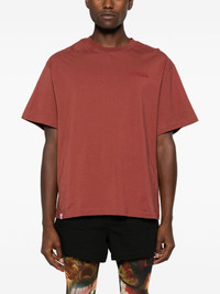 Art Gallery cotton T-shirt Highlights - Burgundy - Organic cotton - Lightweight jersey - Embroidered logo at the chest - Graphic print to the rear - Crew neck - Drop shoulder - Short sleeves - Straight hem - When buying this unisex item, keep in mind that it is graded in standard men's sizing. Imported Composition Organic Cotton 100% SIZE & FIT Model measurements Height 5 ft 10 in(1.78 m) Bust/Chest 32.67 in(83 cm) Hips 35.43 in(90 cm) Waist 23.22 in(59 cm) FittingInformation This unisex piece is designed for a loose fit whether you usually select women's or men's sizes Made from a midweight non-stretch fabric, this piece offers minimal elasticity when worn
