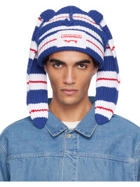 Rib-knit cotton beanie. · Exposed seams and stripes throughout · Ear appliques at crown · Logo patch at rolled brim · Concealed logo hardware at back face Supplier color: Blue/Red/White 100% cotton. Made in South Korea 252101M138026