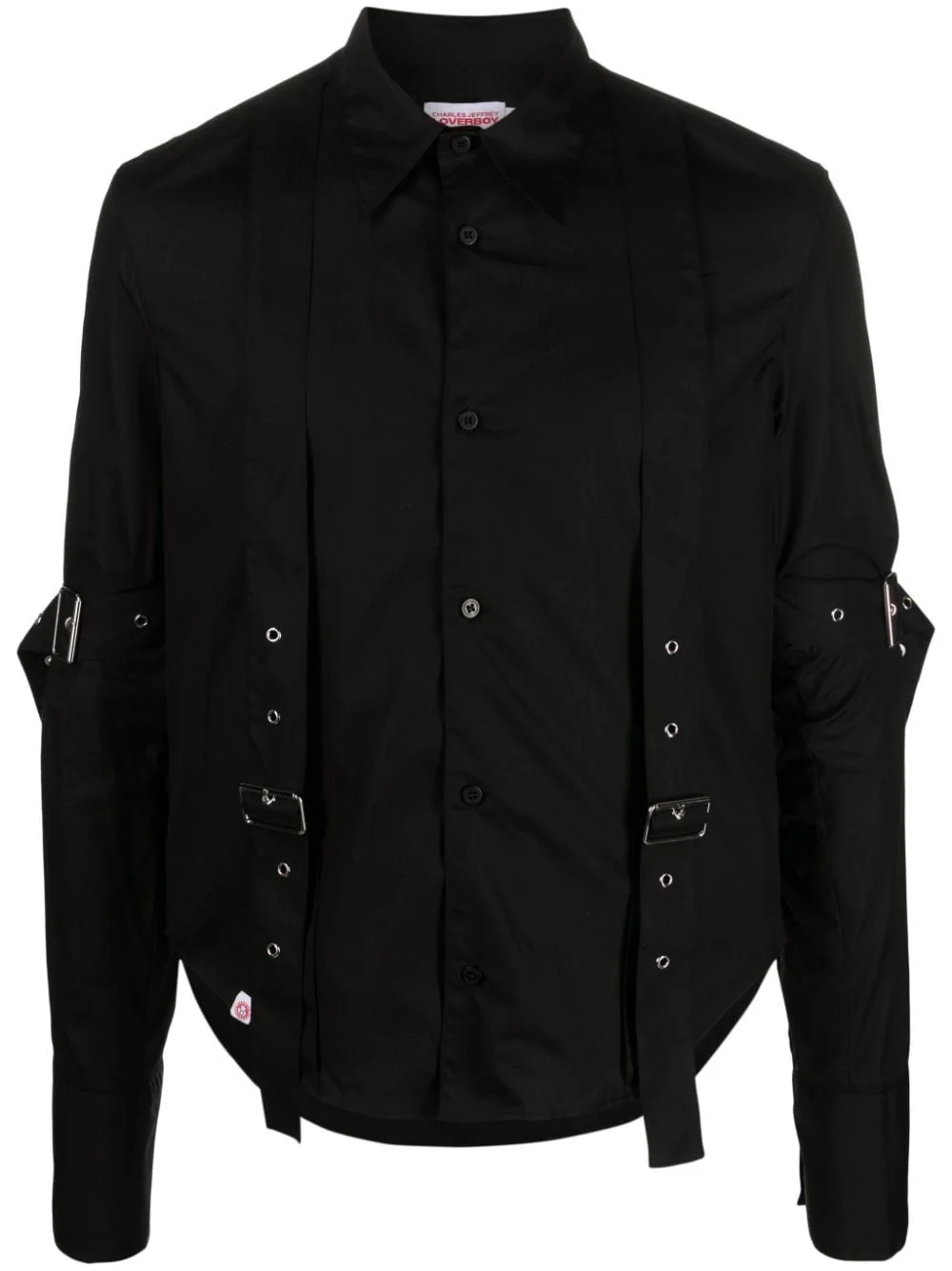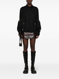 buckled organic cotton shirt Highlights - Black - Organic cotton - Eyelet detailing - Ring embellishment - Silver-tone hardware - Classic collar - Front button fastening - Long sleeves - Buttoned cuffs - Curved hem - When buying this unisex item, keep in mind that it is graded in standard men's sizing Imported Composition Organic Cotton 100% SIZE & FIT Model measurements Height 6 ft 2 in(1.87 m) Bust/Chest 36.41 in(92.5 cm) Hips 35.43 in(90 cm) Waist 29.52 in(75 cm) FittingInformation This unisex piece is designed for a slim fit whether you usually select women's or men's sizes Made from a midweight non-stretch fabric