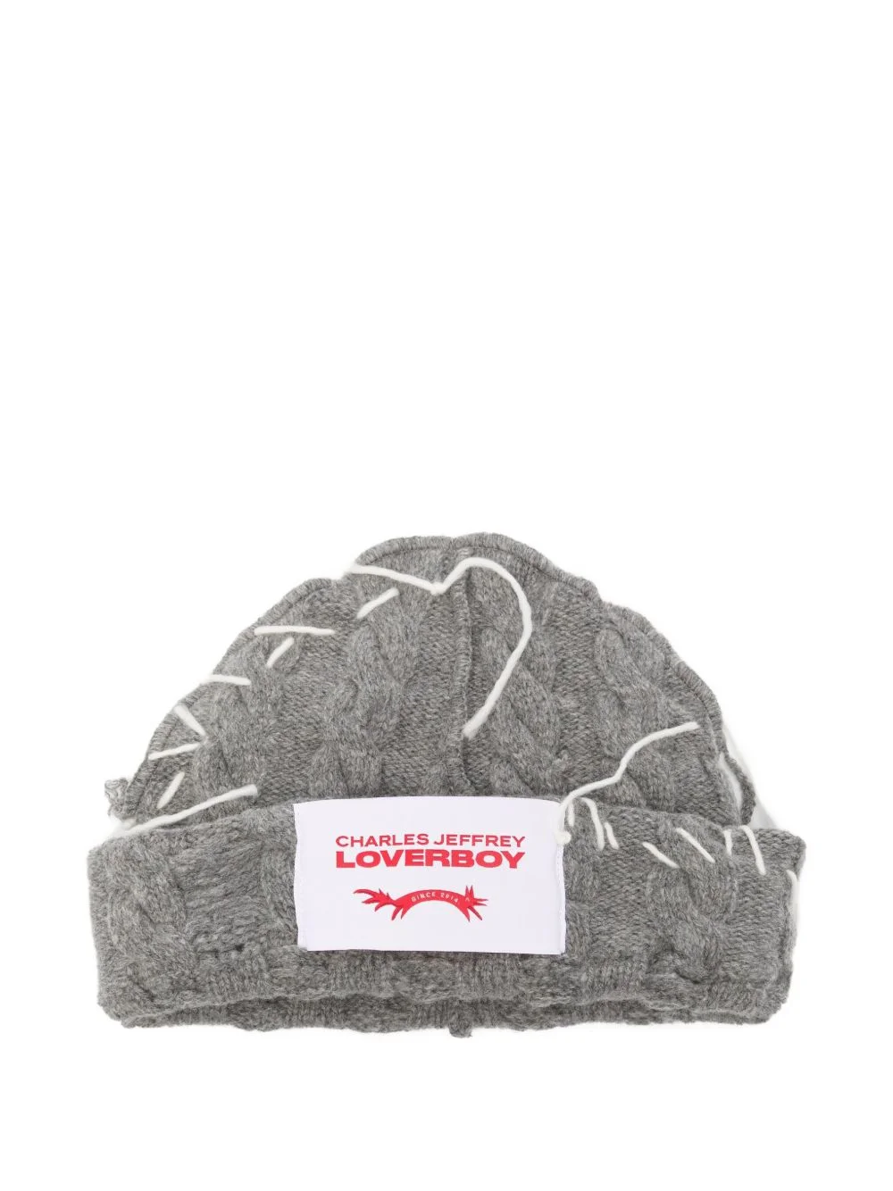 cable-knit beanie hat Highlights - Grey - Cable knit - Stitched detail - Logo patch Made in Italy Composition RWS Wool 80%, Recycled Nylon 20% Washing instructions Hand Wash