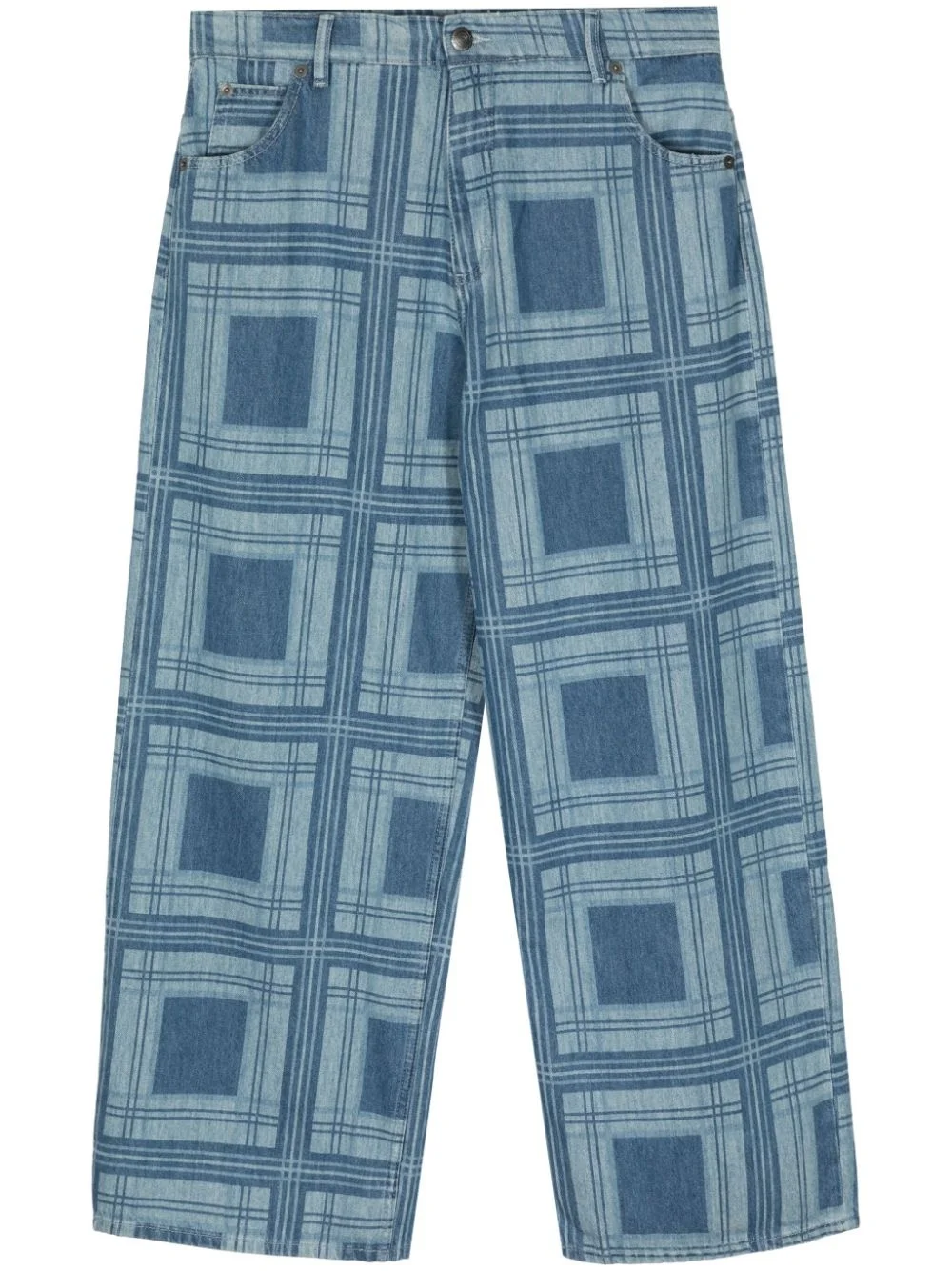 check-print straight-leg jeans Highlights - Blue - Cotton - Denim - Check print - Applique logo - Belt loops - Concealed fly and button fastening - Classic five pockets - Straight leg Imported Composition Cotton 100%
