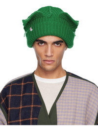 Rib-knit extrafine lambswool and kid mohair-blend beanie. · RWS-certified lambswool · Exposed seams throughout · Ear appliques at crown · Logo patch at rolled brim · Concealed logo hardware at back face Supplier color: Green 47% extrafine lambswool, 37% nylon, 16% kid mohair. Made in South Korea 252101M138040