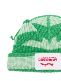 chunky-knit ears beanie hat Highlights - Green - Horizontal stripe pattern - Chunky ribbed knit - Animal-ear details - Logo patch to the front - Turn-up brim Imported Composition Lambs Wool 80%, Nylon 20% Washing instructions Hand Wash