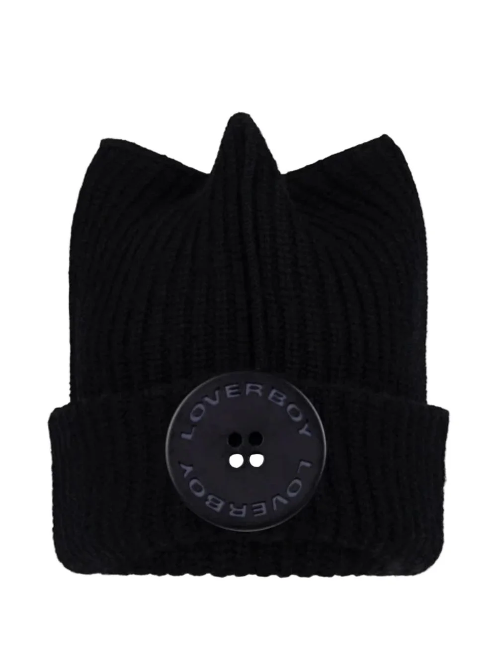 ear-detail ribbed beanie Highlights - Black - Ribbed knit - Ear detail - Button detail Imported Composition Fabric 100% Washing instructions Read Manufacturer Guidelines