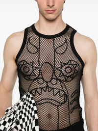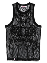 Graphic Net top Highlights - Black - Crew neck - Sleeveless - Straight hem - When buying this unisex item, keep in mind that it is graded in standard men's sizing. Imported Composition Recycled Polyester 97%, Elastane 3% SIZE & FIT Model measurements Height 5 ft 9 in(1.75 m) Bust/Chest 34.64 in(88 cm) Hips 36.61 in(93 cm) Waist 26.37 in(67 cm) FittingInformation This piece is unisex – expect a close fit throughout if you usually select men's sizing; expect a slim fit if you usually select women's sizes Made from a lightweight non-stretch fabric, this piece offers minimal elasticity when worn Washing instructions Hand Wash