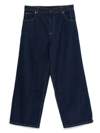 knitted-patch wide-leg jeans Highlights - Indigo blue - Concealed fly and button fastening - Classic five pockets - Belt loops - Logo patch to the rear Imported Composition Cotton 100% SIZE & FIT Model measurements Height 6 ft 2 in(1.88 m) Bust/Chest 37.4 in(95 cm) Hips 38.58 in(98 cm) Waist 31.1 in(79 cm) FittingInformation Designed with a wide leg, these jeans offer a loose and roomy fit Sturdy and hard-wearing, this denim piece offers no stretch