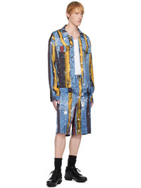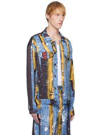 Stretch viscose twill jacket. Stripes, paint splatter, and trompe l'oeil denim pattern printed throughout. · Spread collar · Button closure · Flap and welt pockets · Logo flag at welt pocket · Dropped shoulders · Buttoned barrel cuffs · Leather logo patch at back collar · Locker loop at back yoke · Adjustable button tabs at back hem · Logo-engraved gunmetal-tone hardware Supplier color: Painted stripe 95% viscose, 5% elastane. Made in Portugal 251101M177000