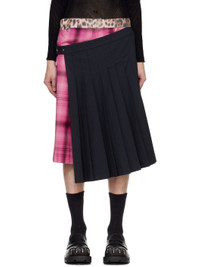 Stretch organic cotton- and recycled polyester-blend broken twill skort. Leopard pattern, check pattern, and pinstripes throughout. · Wrap construction · Belt loops at sateen waistband · Two-pocket styling · Zip-fly · Pleated overlay with pin-buckle strap at front · Logo patch at back pocket Supplier color: Navy fabric salad