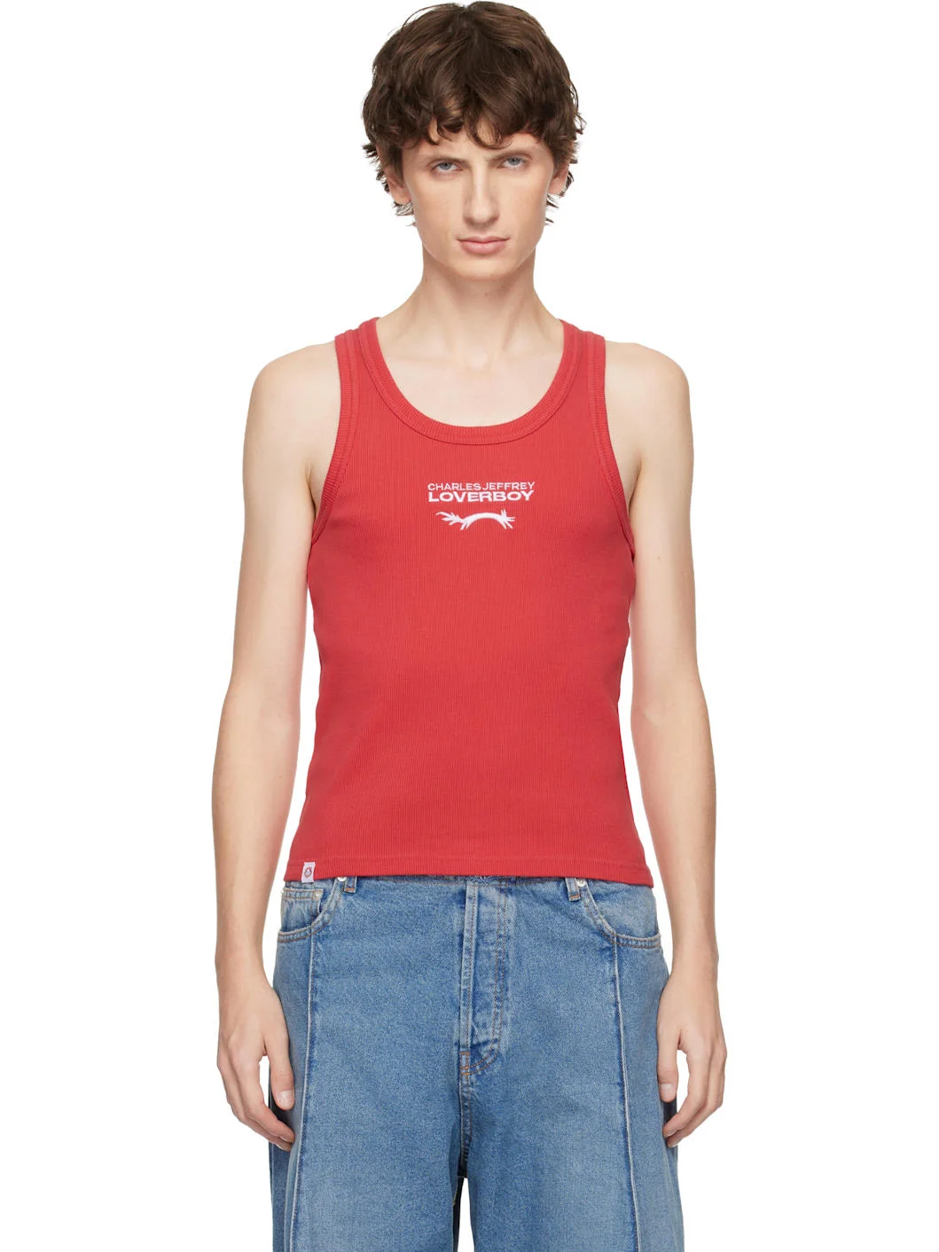 Rib-knit organic cotton tank top. · Scoop neck · Embroidered logo at chest · Logo patch at front hem Supplier color: Red with White 100% organic cotton. Made in Portugal 251101M214005