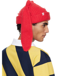 Rib-knit lambswool- and mohair-blend beanie. · RWS-certified lambswool and mohair · Exposed seams with loose threads throughout · Ear appliques at crown · Logo patch at rolled brim · Concealed logo hardware at back face Supplier color: Red 47% rws extrafine lambswool, 37% nylon, 16% rms kid-mohair. Made in South Korea 252101M138036