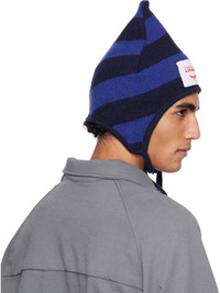Knit lambswool-blend beanie. · Stripes throughout · Logo patch at face · Rib-knit trim at face · Ear flaps with self-tie chin strap Supplier color: Blue/Navy 80% lambswool, 20% nylon. Made in South Korea 252101M138034
