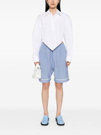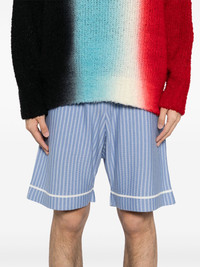 striped shorts Highlights - Sky blue - Elasticated waistband - Two side welt pockets - Stretch-jersey Imported Composition Merino 100% SIZE & FIT Model measurements Height 5 ft 10 in(1.77 m) Bust/Chest 30.7 in(78 cm) Hips 35.82 in(91 cm) Waist 21.25 in(54 cm) FittingInformation This piece is unisex and is designed with a straight-cut over the leg whether you usually select women's or men's sizes The elasticated waist allows for a comfortable fit Made with a midweight knit, this piece offers some stretch Washing instructions Hand Wash