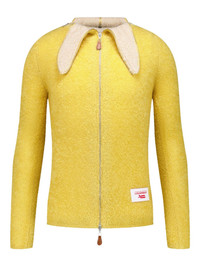 zip-up sweater Highlights - Yellow - Zip fastening - Banana collar detail - Label detail Imported Composition Body: Mohair 49% Lambs Wool 32%, Polyamide 19% Washing instructions Read Manufacturer Guidelines