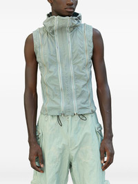 hooded zip vest Highlights - Light grey - Hooded neckline - Multiple zip fastenings - Sleeveless design - High neck - Straight hemline Made in United Kingdom Composition Nylon 100% Washing instructions Machine Wash