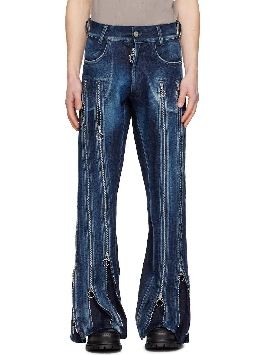 Blue Adjustable Fit Zip Jeans