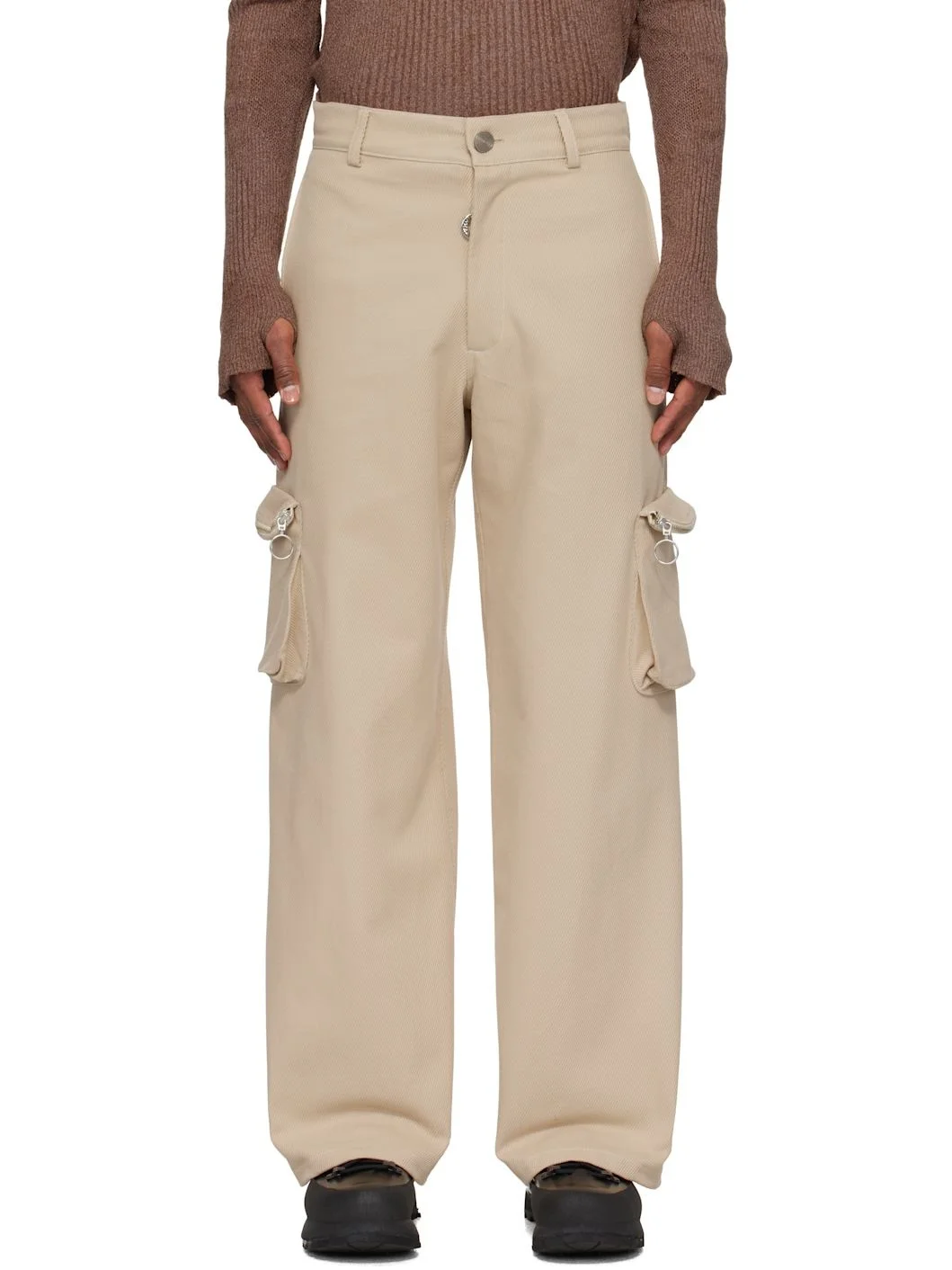 Wide-leg cotton cavalry twill cargo pants. · Belt loops · Two-pocket styling · Zip fly · Zip pocket at outseams · Zip expansion panel at back cuffs Supplier color: Beige 100% cotton. Made in United Kingdom 251785M188001
