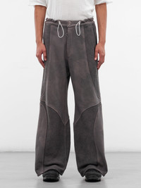 Featuring: • Baggy fit • Wide leg • Paneled jersey construction • Reverse contrast paneling • Elasticated waistband • Adjustable drawstring and bungee fasteners • Front button and zip fly closure • Inset pockets • Made in UK • Jersey • Standard sizing Model is 6'1" wearing size M. Shoulders: 19" Chest: 38" Waist: 28"